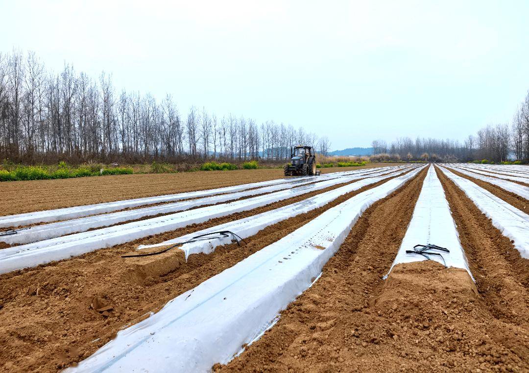 走进新市街道怀远社区的优质蔬菜现代农业园,近700亩土豆地已完成播种。地里面,一条条洁白的地膜像是给大地系上了整齐的领带;地膜下面,土豆种块正借着春日的暖意悄悄扎根、孕育新芽。