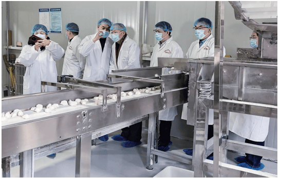 在临县鸿泰恒邦食品有限公司,调研组参观了速冻水饺生产线。作为当地食品生产的小微企业,公司构建了完整产业链。调研组详细了解产品研发、质控及销售情况,重点关注企业对食品安全的管理情况。调研组认为,小微企业的发展需要政府高度关注并给予相对应的政策支持,要健全“从农田到餐桌”的全链条监管,让消费者放心,让吕梁特色食品品牌走得更远。