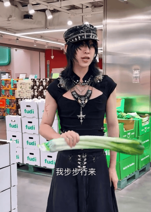在北京一家普通超市里,顾客们惊愕地看到一个朋克打扮的年轻人突然举起大葱,开嗓唱起了京剧《红娘》。黑色皮衣上的铆钉与链条在灯光下闪烁,夸张的烟熏妆下,一双眼睛却透着传统京剧演员特有的神韵。